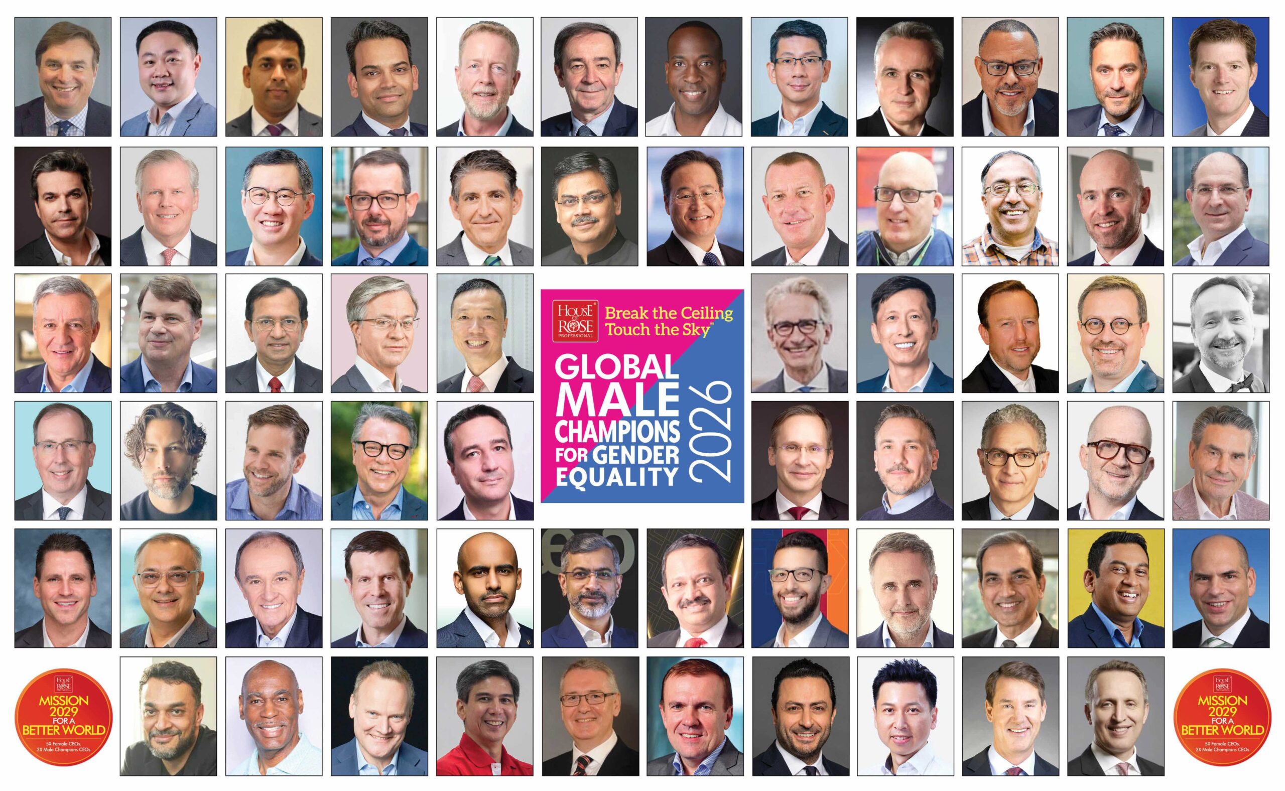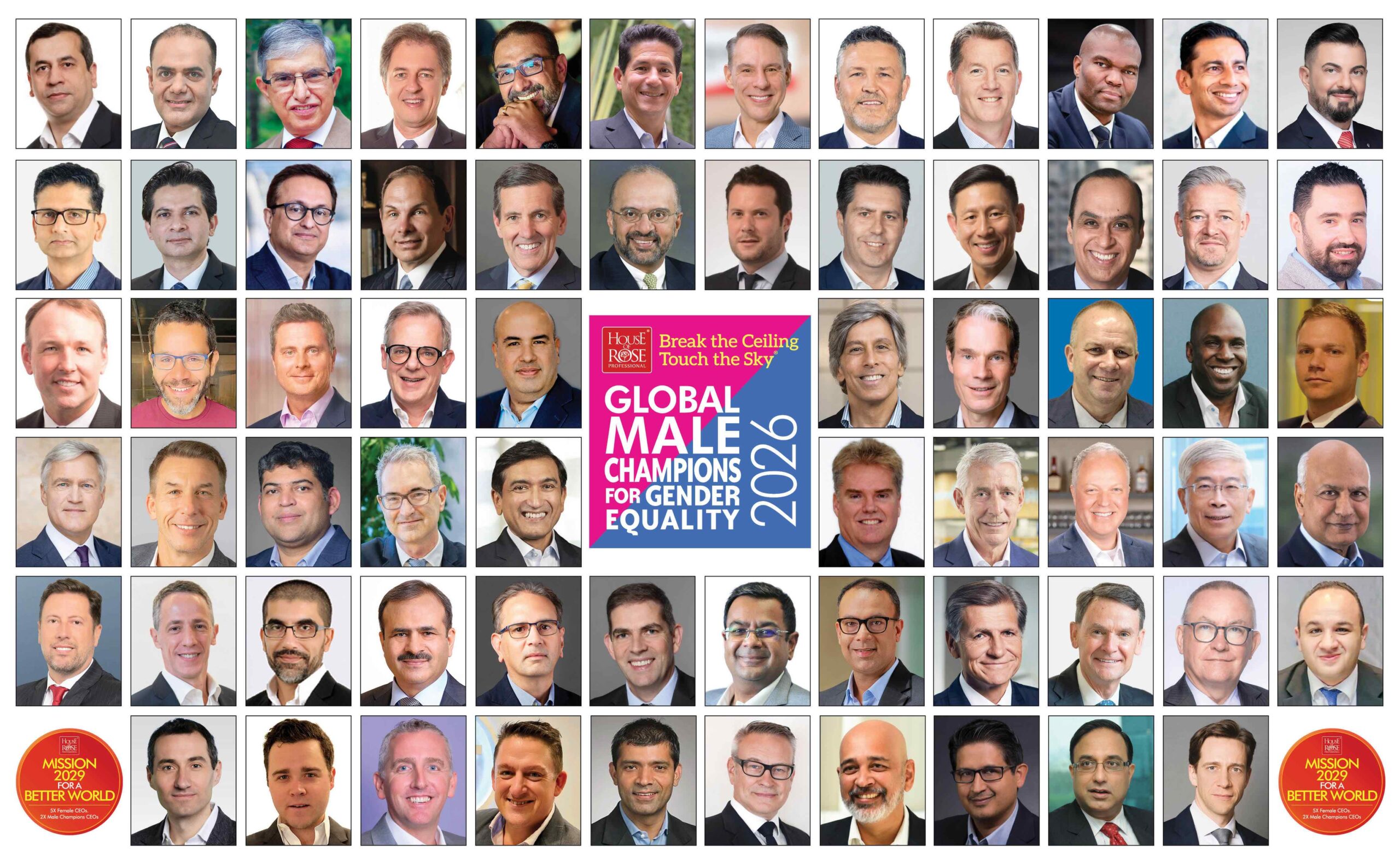 The 2026 Break the ceiling touch the sky® Male Champions for Gender Equality is a listing that starts with over 250 nominees and leverages House of Rose Professional’s proprietary research of over 6500 male executives globally from over 800 Companies. While this is obviously not a complete representation of all the great work being done by male advocates and allies around the world, the list serves as a highlight of men that deserve to be celebrated for their ongoing allyship.
