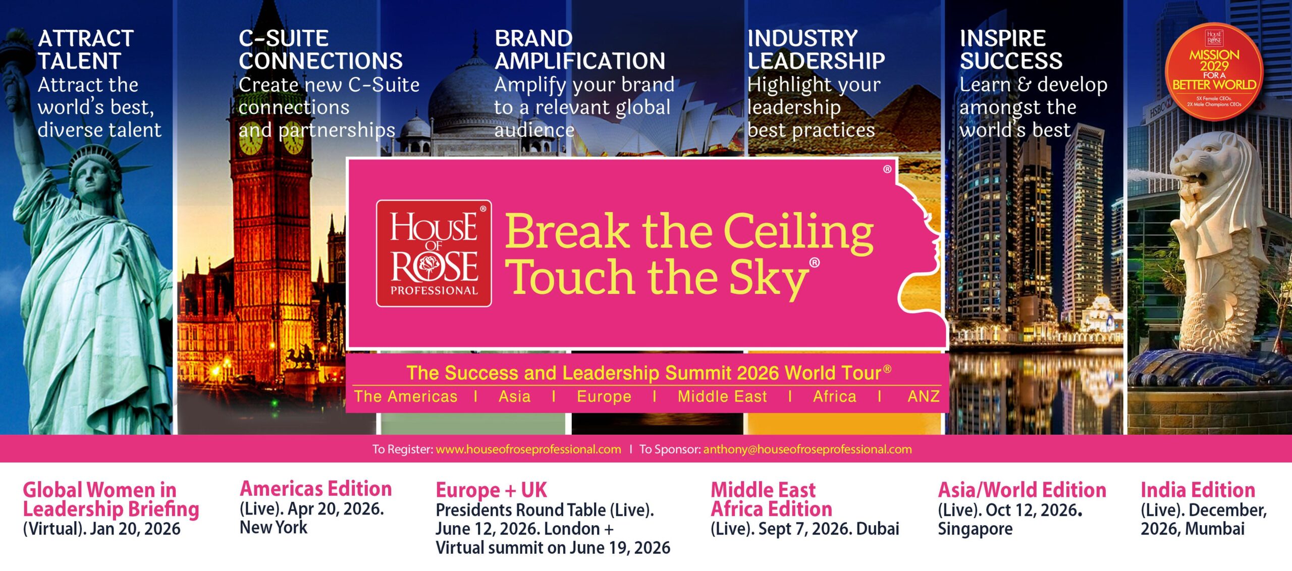 Break the ceiling touch the sky – the success and leadership summit for women® is the world’s fastest growing forum for women in leadership and male leaders who champion diversity launched by House of Rose Professional in 2015, with current editions in Singapore (World Edition), ANZ, Asia, Middle East, Europe, North America, Africa and new locations to be launched in 2022.
